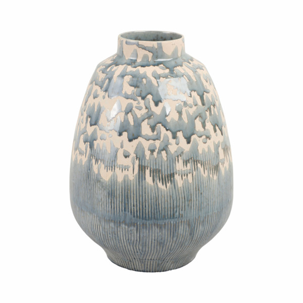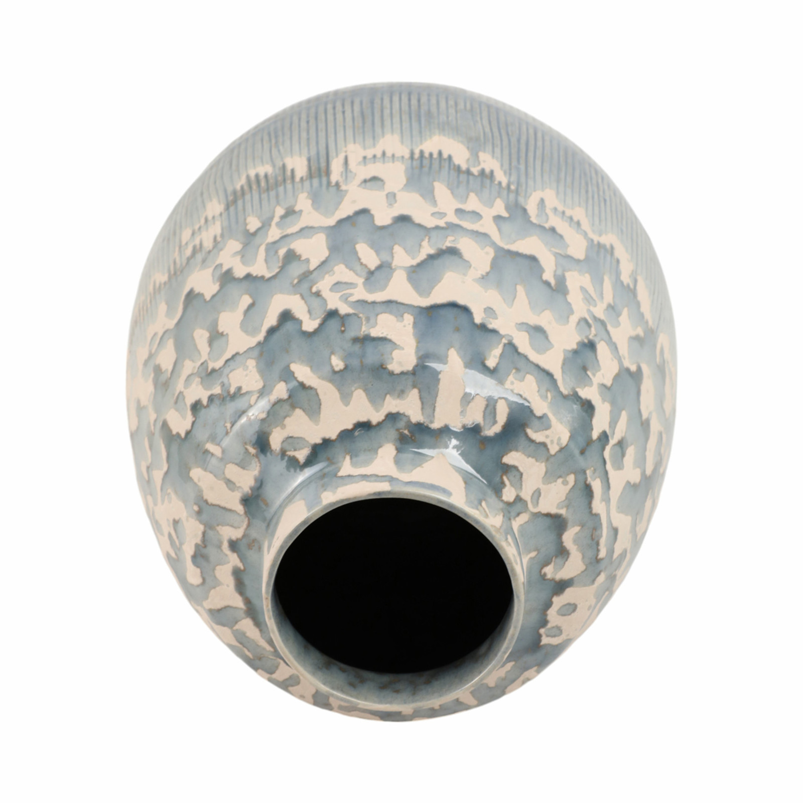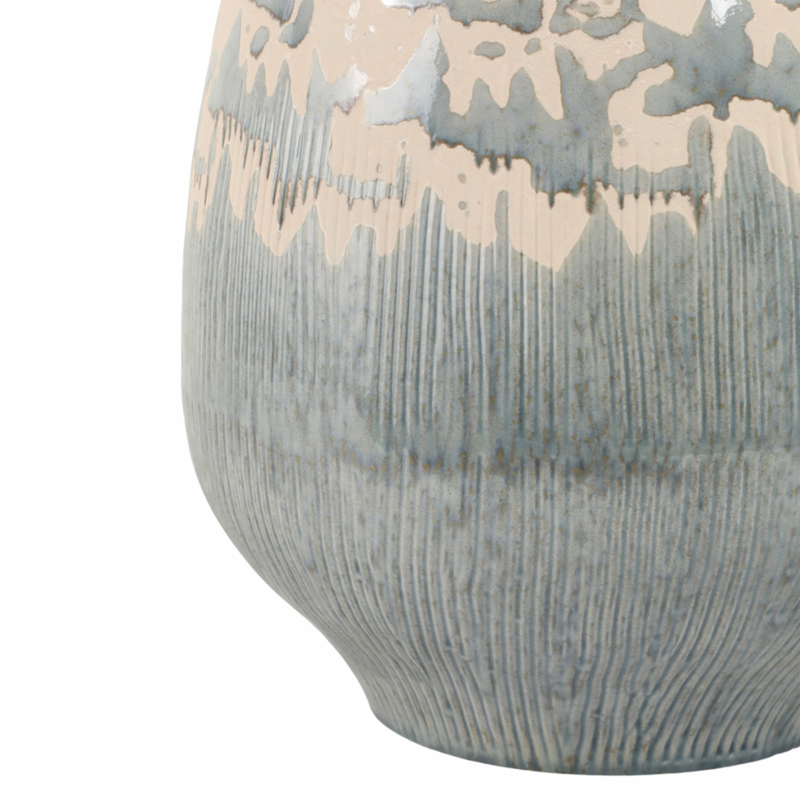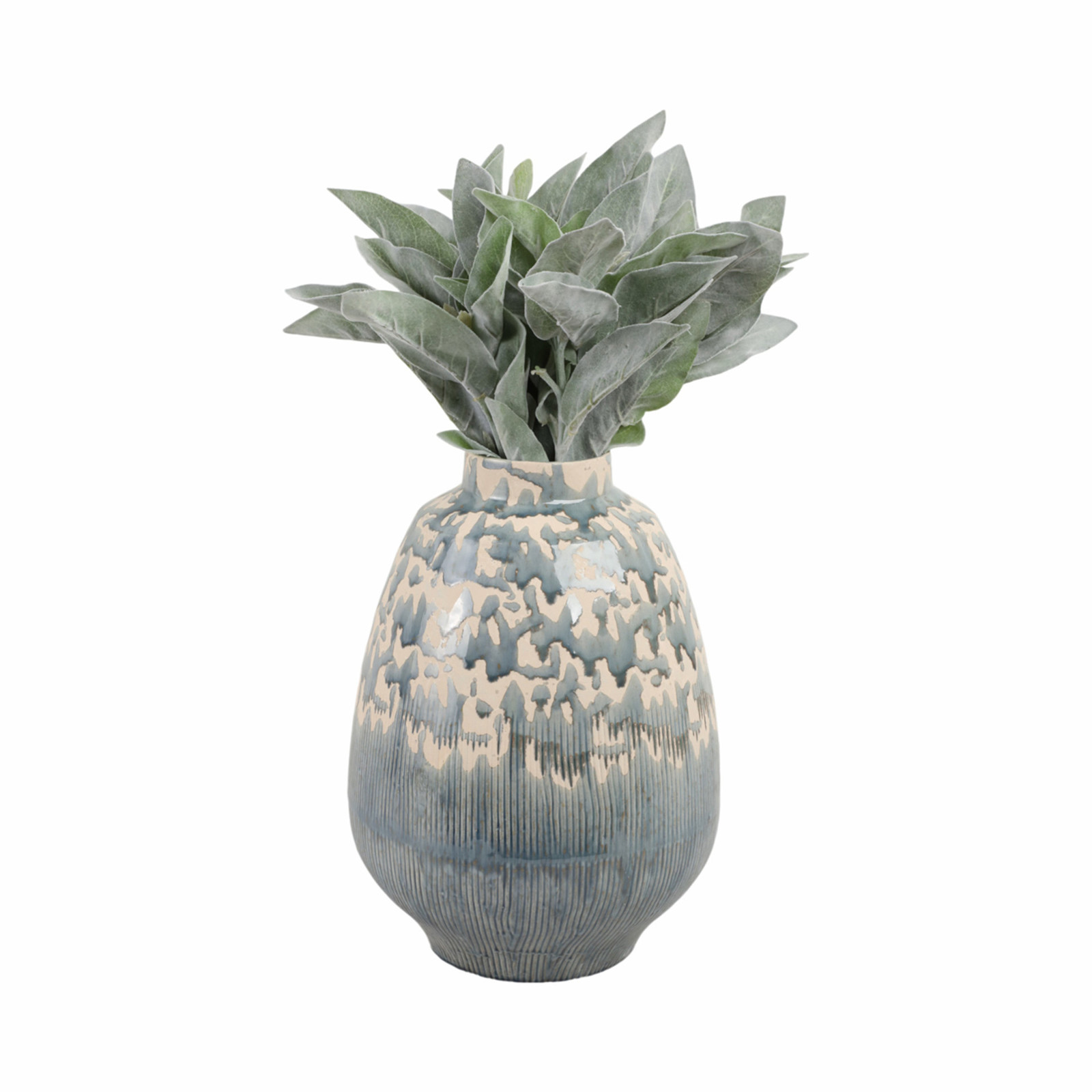 Handcrafted in Portugal, the Alvito Vase showcases the artistry of ceramic tradition with a contemporary twist. Its organically shaped form is adorned with a layered blue glaze that flows over a soft natural base, creating a unique pattern reminiscent of watercolor or ocean waves. Each piece is individually finished, ensuring that no two vases are exactly alike. Perfect as a standalone accent or paired with greenery, the Alvito Vase adds a serene, coastal-inspired elegance to consoles, dining tables, or open shelving.