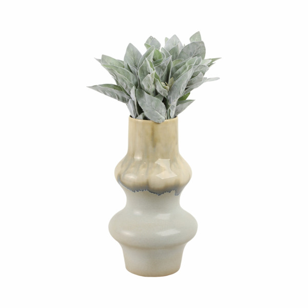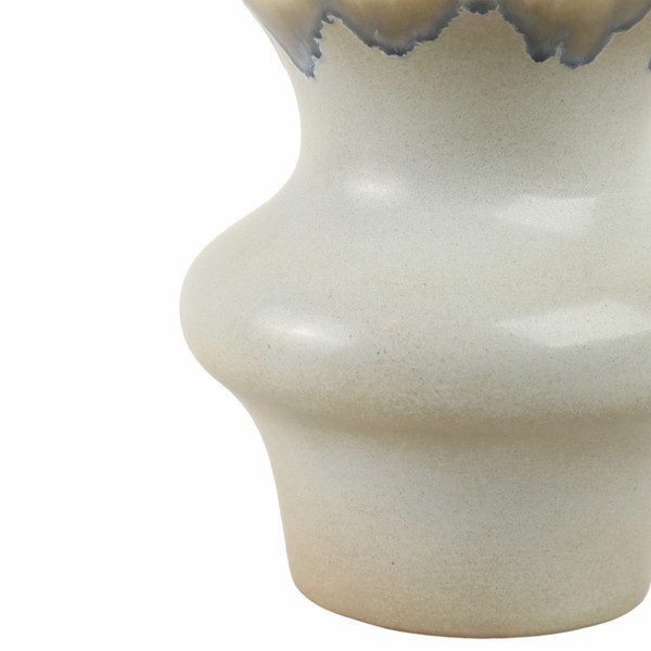 Elegant and sculptural, the Monsaraz Vase embodies the refined artistry of Portuguese ceramics. Its curving silhouette is enhanced by a soft reactive glaze that cascades from warm sand tones into gentle grey hues, creating a natural, fluid transition of color. The high-gloss finish captures light beautifully, adding depth and quiet sophistication to its contemporary form.