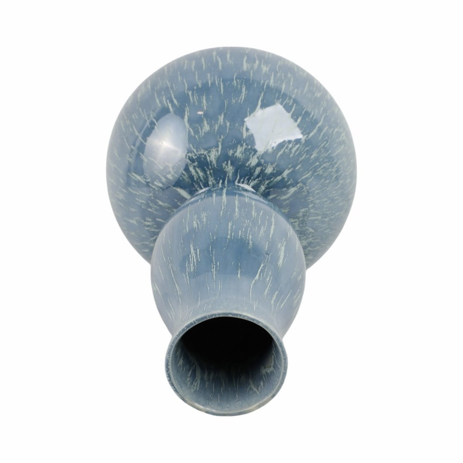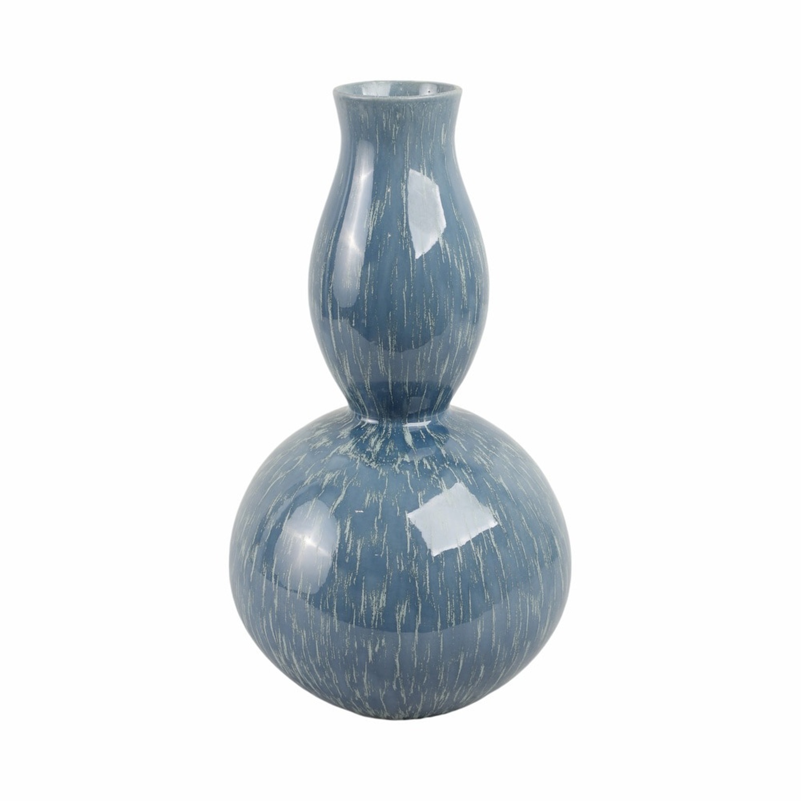 Artful and expressive, the Bucelas Medium Vase celebrates Portuguese ceramic craftsmanship in a sculptural, double-gourd form. Hand-finished in a tranquil blue glaze with subtle reactive variations, it evokes the shifting tones of water and sky. The glossy surface highlights delicate striations that give each piece its own distinct character and depth.