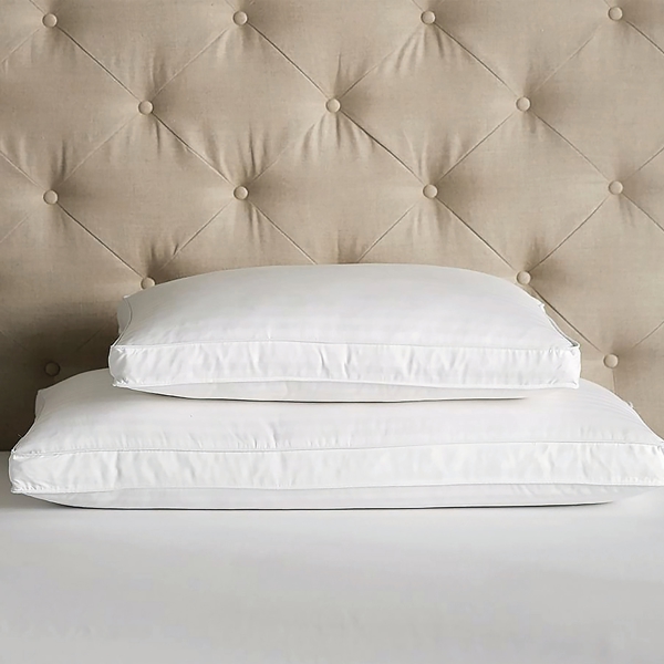 Experience the plush comfort of down, minus the feathers. Crafted from 100% cotton (40s 40s 110x90, 220gsm 9.0D 100% polyester Hollowfill), this pillow delivers gentle, breathable support. The 2" gusset with self-fabric piping maintains perfect shape and loft night after night.