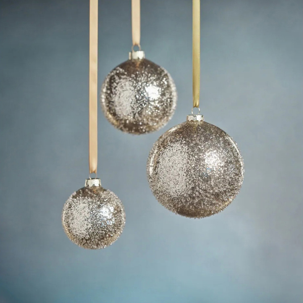 Create a winter wonderland with this textured gold ball ornament. This hanging ornament is perfect for decorating your Christmas Holiday tree.