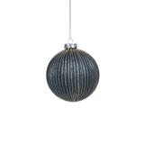 This 4" blue glass ball ornament, adorned with champagne‑hued glitter, is designed to draw the eye and elevate any display - whether on a tree, in a bowl, or nestled among decorative accents.