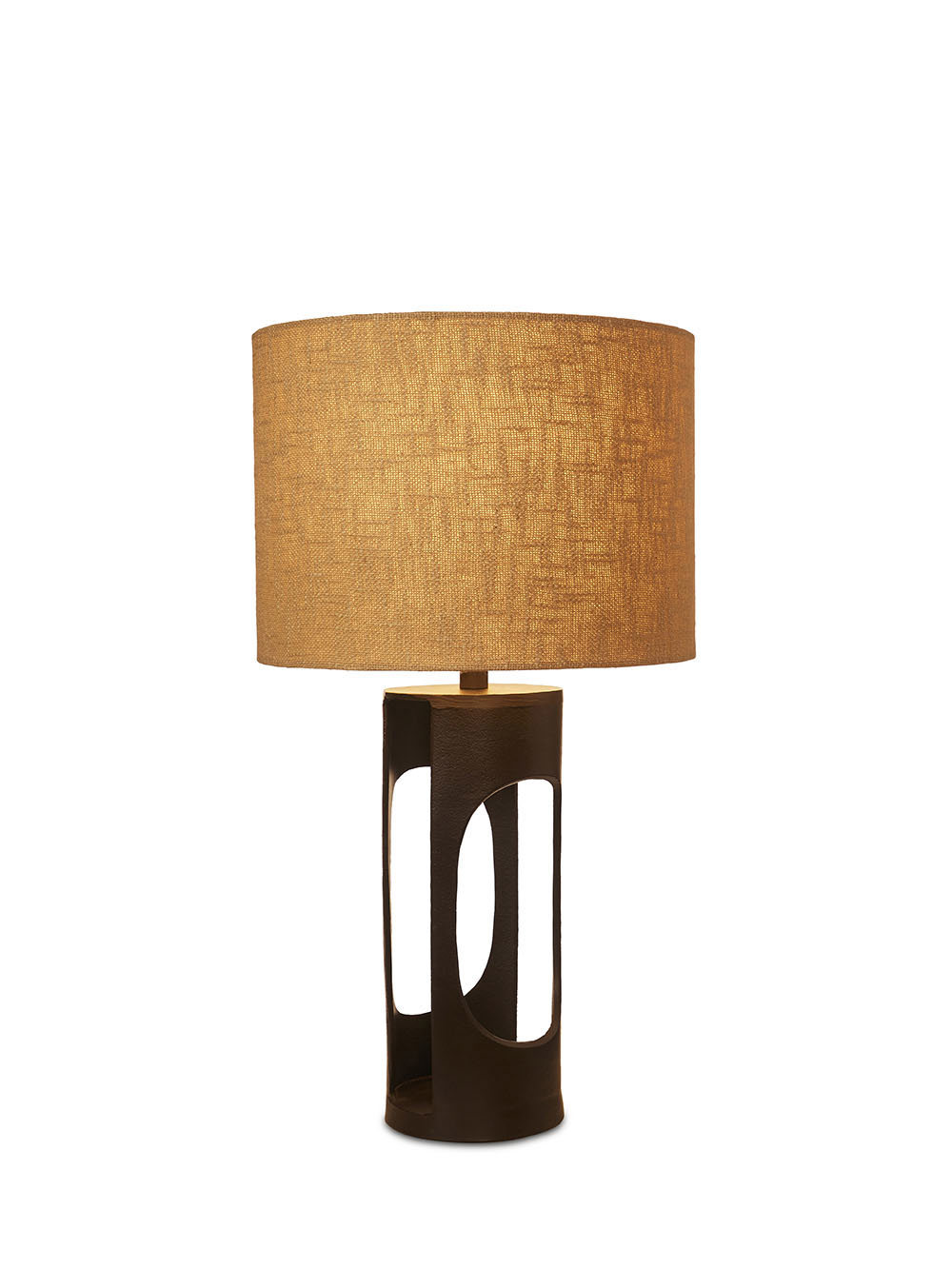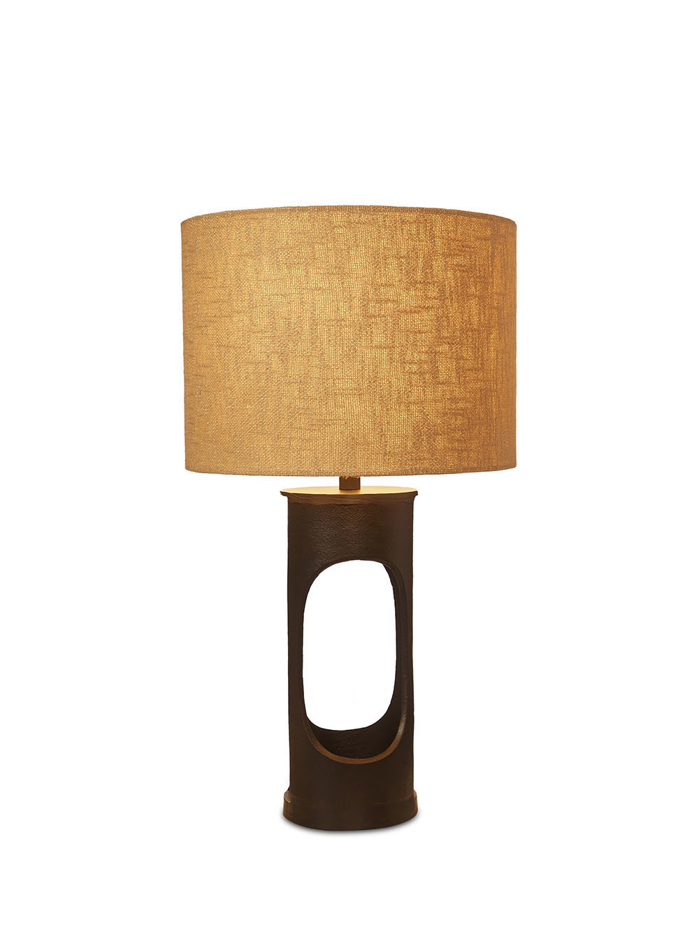This lamp’s solid cast metal base anchors a soft fabric shade for a refined play of weight and warmth. The understated silhouette and natural texture make it a versatile piece that blends seamlessly with both modern and rustic interiors.