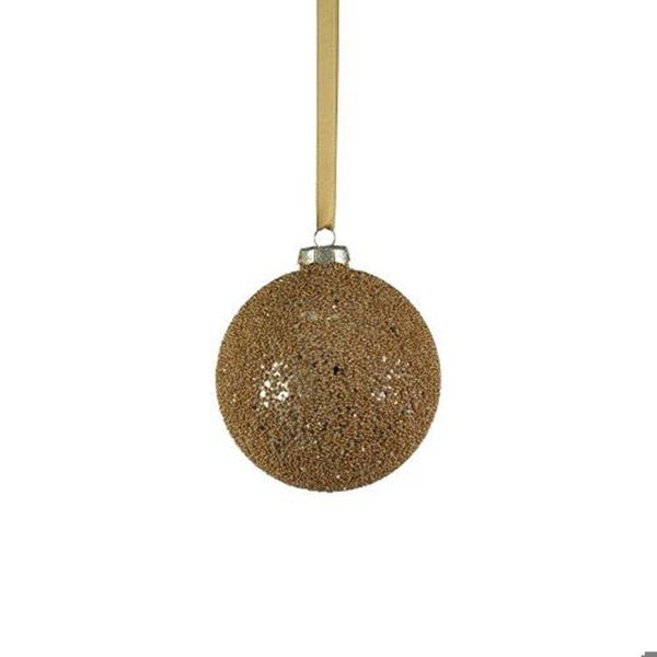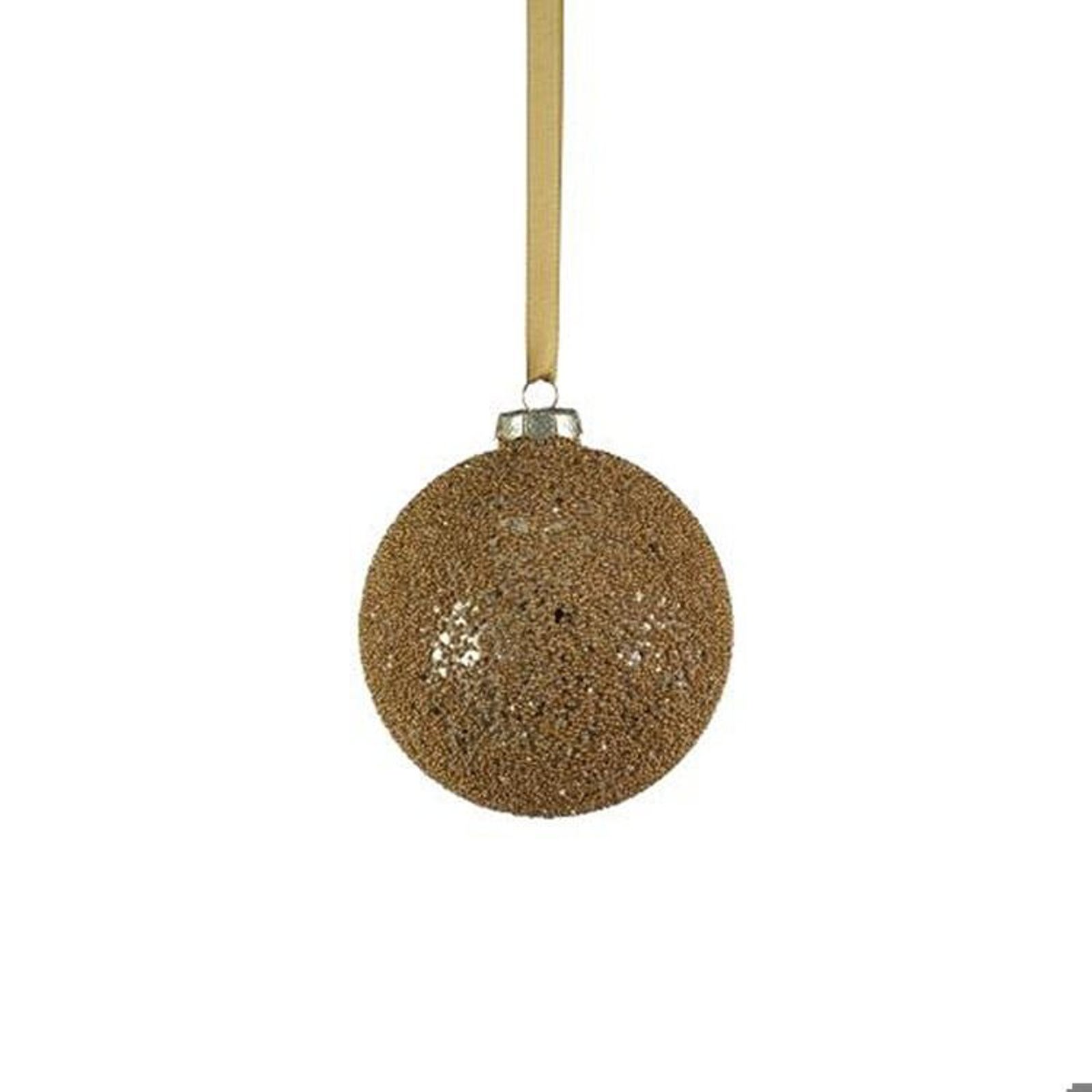 Add a touch of elegance to your holiday decor with this stunning Gold Beaded Glass Ball Ornament. This ornament features intricate gold beading that catches the light beautifully. Hang it on your tree or display it in a bowl for a festive touch. This ornament is sure to become a cherished part of your holiday traditions for years to come.