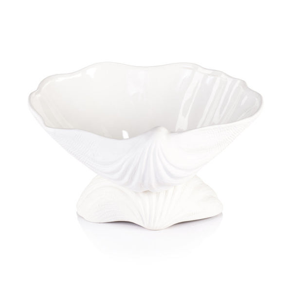 Bring a touch of the ocean to your table with this clam shell bowl, a beautifully crafted piece inspired by the organic beauty of the sea. Designed to mimic the natural curves and textures of a real clam shell, this bowl exudes coastal charm and artisanal elegance. The smooth glazed interior enhances its usability, while the subtly textured exterior adds depth and dimension, evoking the natural texture of clamshell. Ideal for coastal-themed décor, elegant dining settings, or as a stunning standalone centerpiece, this clam shell bowl is more than just tableware; it's a statement piece that brings the beauty of the ocean to your home. 34.3 x 34.3 x 21