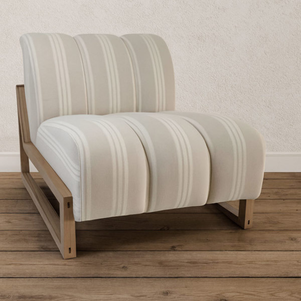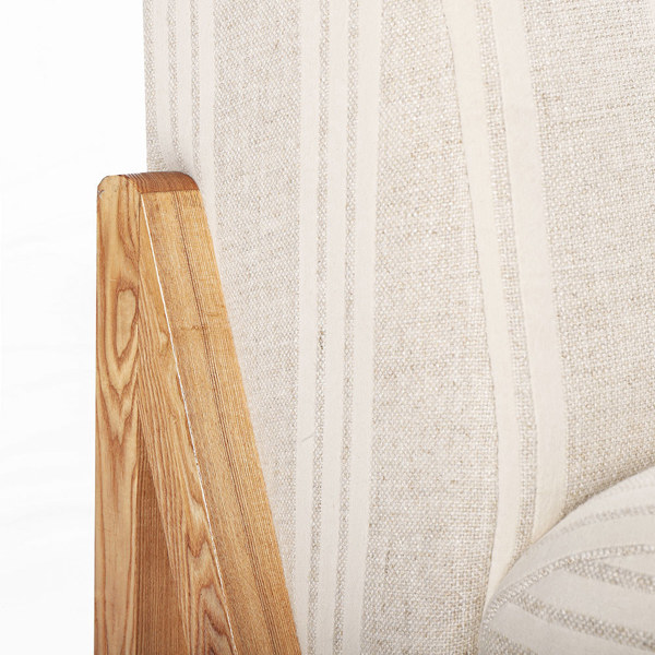 Casual elegance meets sculptural design in the Palm Lane Striped Lounge Chair. Its wide, channeled upholstery offers plush comfort and a bold sense of form, while the neutral striped fabric brings a light, coastal-inspired sophistication. Supported by a clean, open wood frame, this chair blends texture, warmth, and modern geometry in perfect balance. Designed for both comfort and visual appeal, it’s the ideal accent for living rooms, reading corners, or airy sitting areas. The Striped Lounge Chair invites relaxation while adding a refined, contemporary statement to any space.