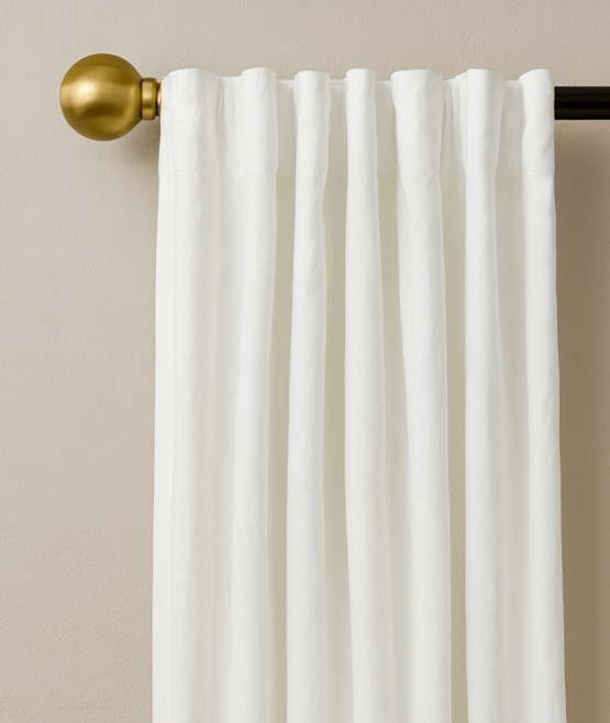 Woven from our 55% linen and 45% cotton blend, these drapes strike the perfect balance between natural texture and airy movement. The lightly rumpled finish lends an understated, lived-in elegance, while the breathable fabric filters light for a soft, calming glow. Over time, they only grow softer and more inviting—bringing easy, elevated comfort to any room. Available in 2 lengths.