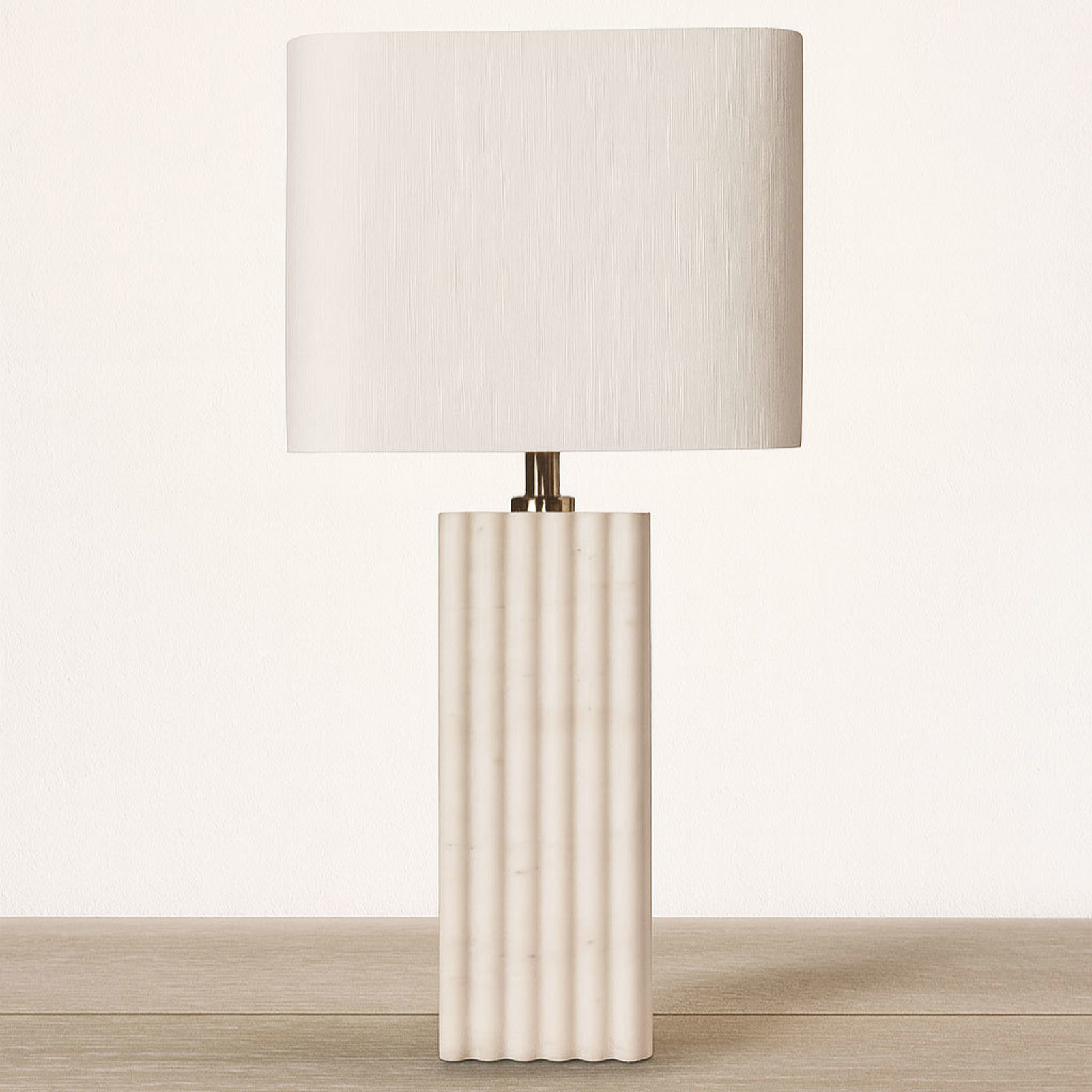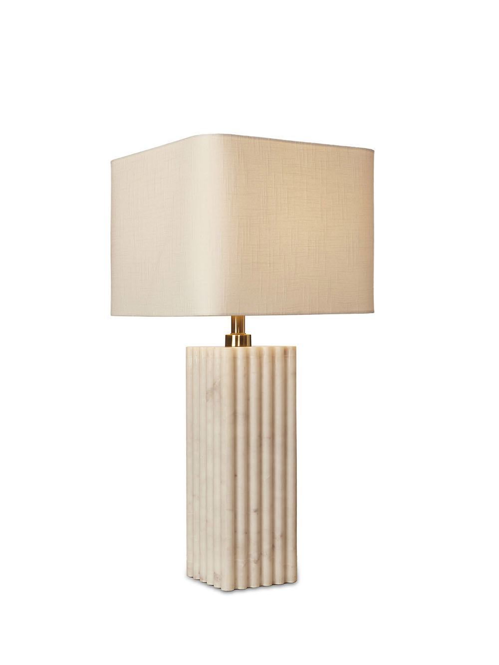 Clean lines and luminous stone define this elegant piece. Crafted from polished white marble, the lamp’s timeless silhouette and neutral palette make it a sophisticated complement to any décor, from classic to contemporary.